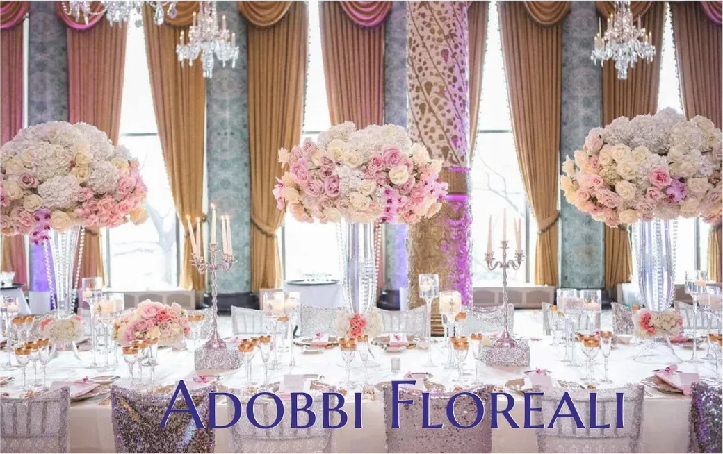 Affitto macchine per cerimonia, set Hollywood, stampa menu e segna posto, addobbi floreali e make-up artist per un evento raffinato.